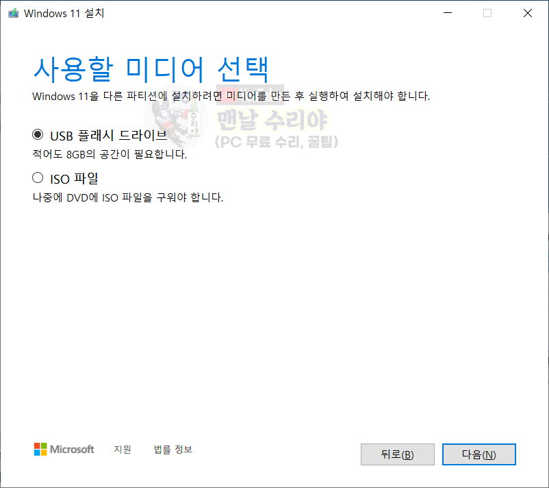 2) USB에 윈도우11 설치 파일 마운트하기 (부팅 USB 만들기)