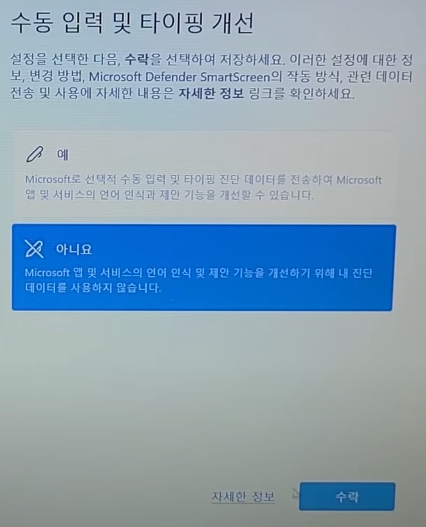 #.4까지 진행됐다면, 윈도우11 설치 자체는 완료됐지만 이제 사용자 개인에 따른 환경 설정을 마무리해야 합니다.