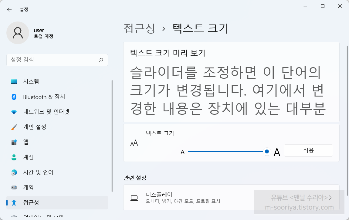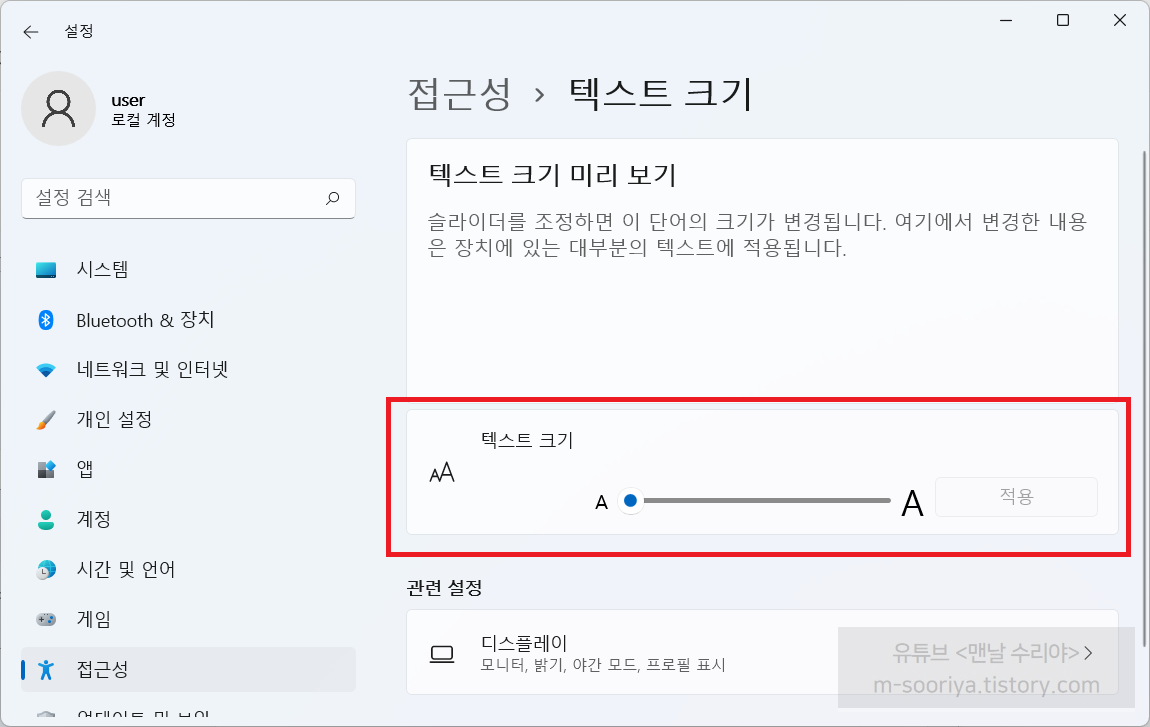 4) 아니면 전체적인 배율 말고, 텍스트 사이즈만 조절할 수도 있습니다.