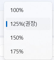 3-1) 기본적으로 100%, 125%, 150%, 175%를 선택할 수 있지만 [>] 부분을 눌러서 수동으로 입력할수도 있습니다.