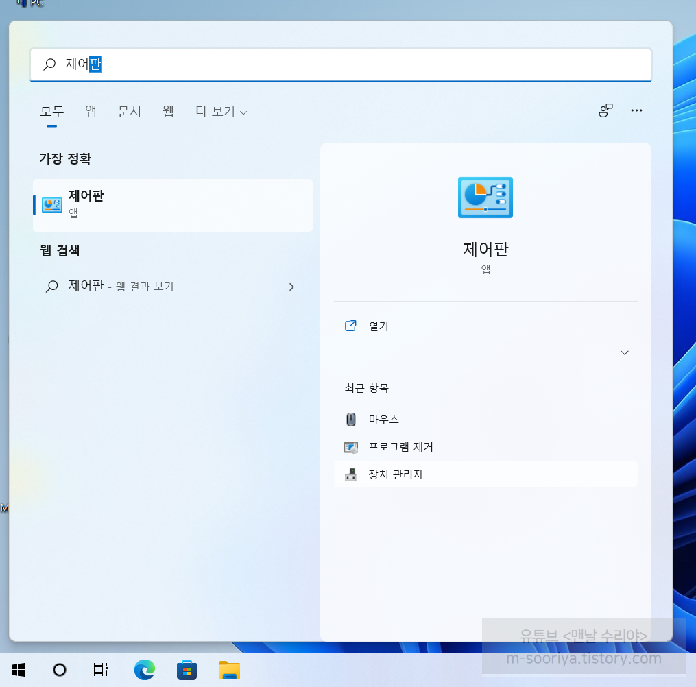 먼저 윈도우 시작버튼을 누르고 제어판을 검색하여 실행합니다.