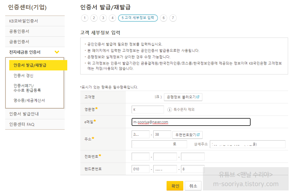 9) 아래 정보도 마저 입력 후 [확인]을 누릅니다.