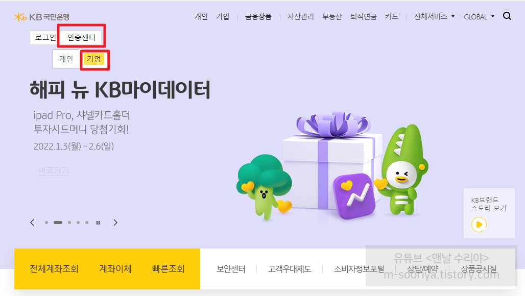 1) 일단 KB국민은행 홈페이지에 접속합니다.