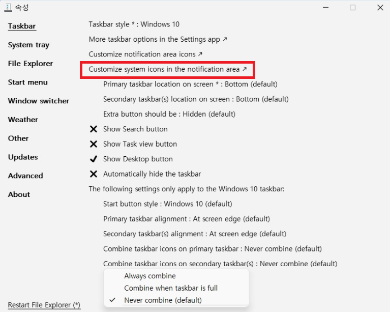 작업표시줄 우측 트레이 아이콘 생기게 하기 (날짜, 시간, 볼륨, 인터넷 등)