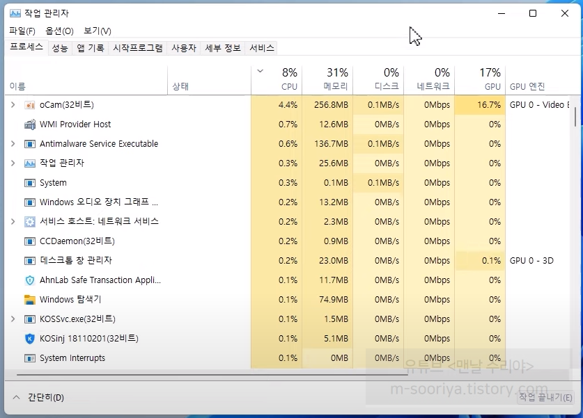 그리고 키보드 [CTRL] + [SHIFT] + [ESC]를 눌러 '작업관리자' 창을 띄워보세요.