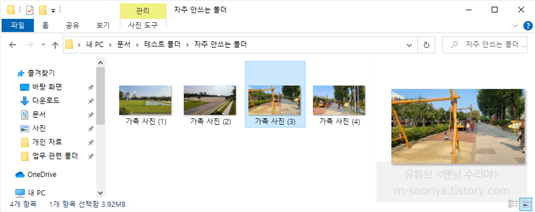 이때 윈도우 탐색기 오른쪽에 사진 미리보기 영역을 만들면 더욱 크게 확인할 수 있습니다.