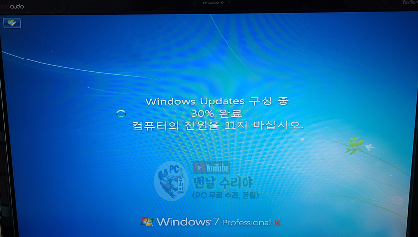 (몇십분씩 걸리는 경우도 있으니, 그렇다고 강제 종료하면, 윈도우 부팅이 아예 안될 수 있다..)
