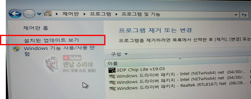 3) 좌측 [설치된 업데이트 보기] 클릭