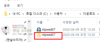 * 아니면, 윈도우10 설치용 USB 따로, ntpwed07 폴더만 담을 USB 따로 있어도 된다.