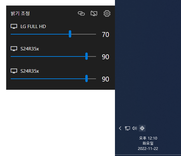 별모양 같은 아이콘이 있는데, 이게 [Twinkle Tray] 아이콘 입니다.