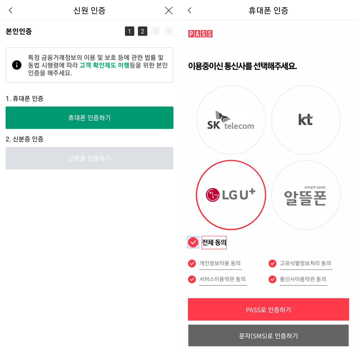 8) 이제 흔한 휴대폰 인증을 진행합니다.