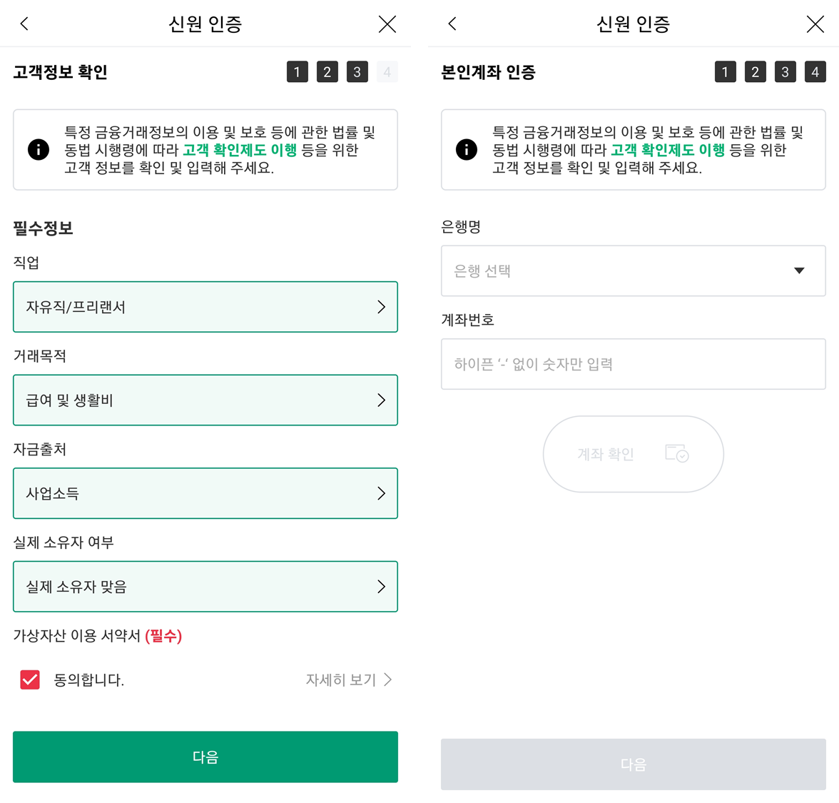 11) 간단히 내 정보와 은행명, 계좌번호를 입력하고 [다음]을 누릅니다