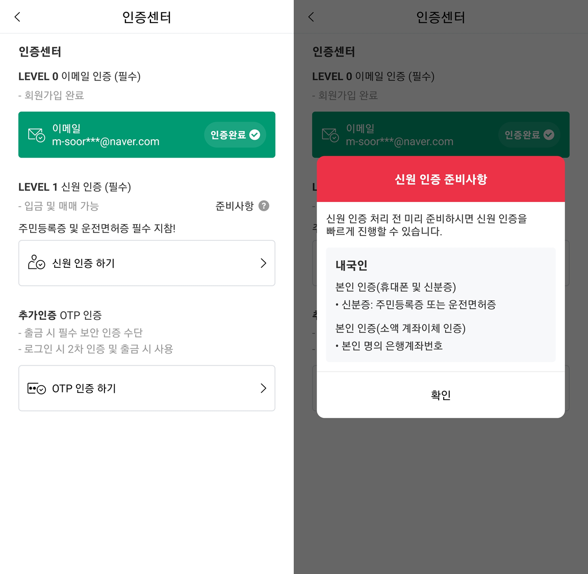 6) 이제 [신원 인증 하기]를 누릅니다.