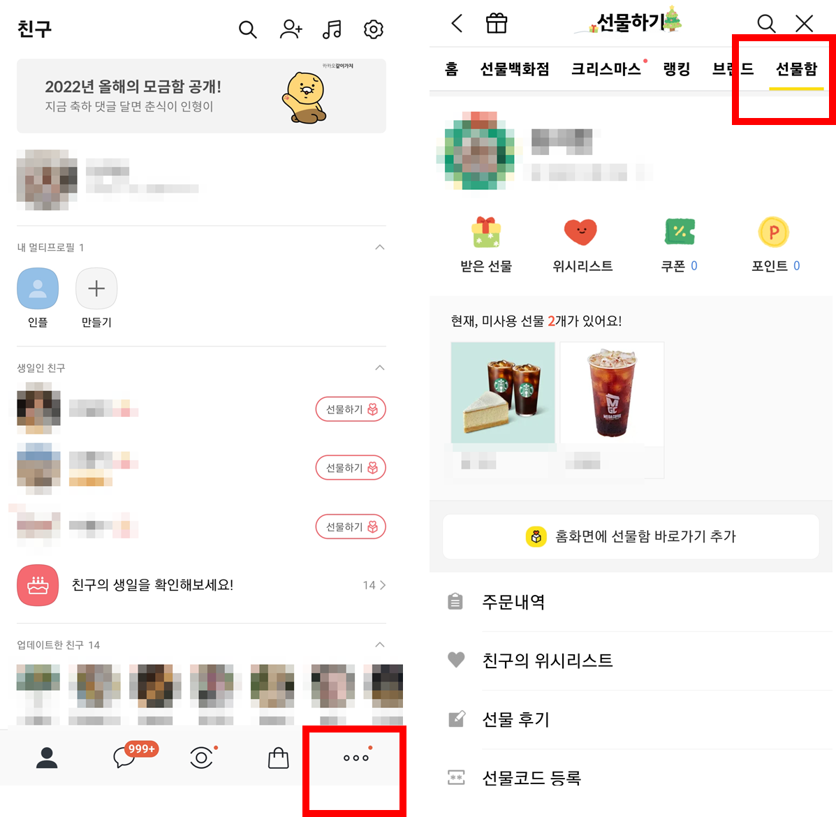 상단 메뉴의 [선물함]으로 이동합니다.